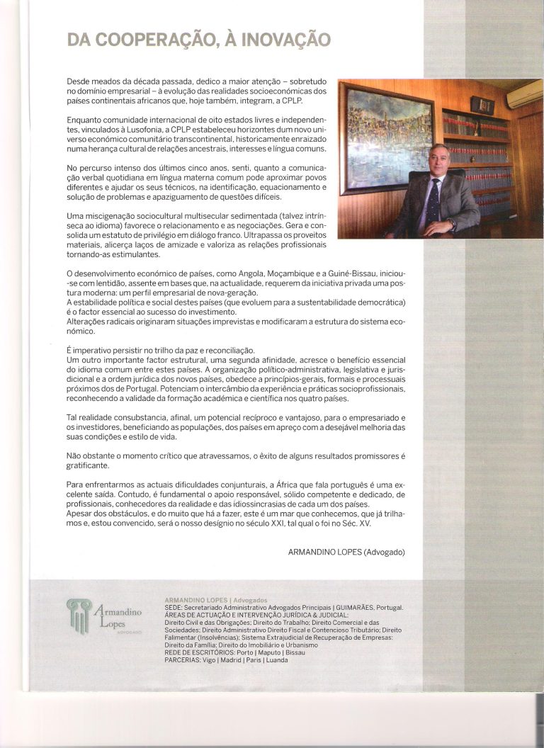 A Armandino Lopes Advogados é um escritório com sede em Guimarães e presença no Porto e em Maputo, fundado em 1995. Com mais de três décadas de atividade, alia experiência jurídica consolidada a uma visão internacional, acompanhando empresas, particulares e investidores em Portugal e nos mercados lusófonos.